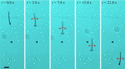 實(shí)驗(yàn)顯示,游泳者游泳者和微游泳者粘稠環(huán)境中表現(xiàn)令人非常滿意和驚喜。尤其是對(duì)微型游泳者的進(jìn)一步實(shí)驗(yàn)中,后者不僅可以攜帶“貨物”,還可像細(xì)菌一樣旋轉(zhuǎn)運(yùn)動(dòng)。